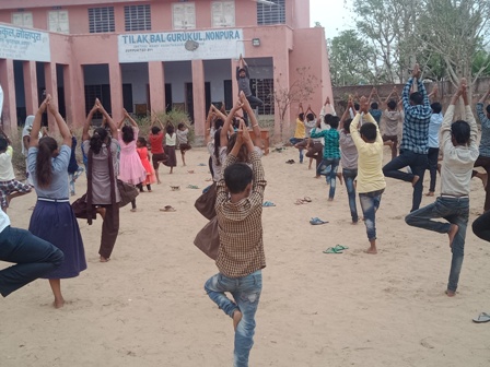 On this International Yoga Day Tilak Bal Gurukul Langadiyawas and Nonpura students and teachers performing yoga aasana. TBG has always encouraged their students and teachers for such activities. Schools being in rural area doesnt affect, Teachers and Students were always welcome such day and participated enthusiastically. Benefits of Yoga also shared with all students so they can learn and remember various Yoga Aasan.